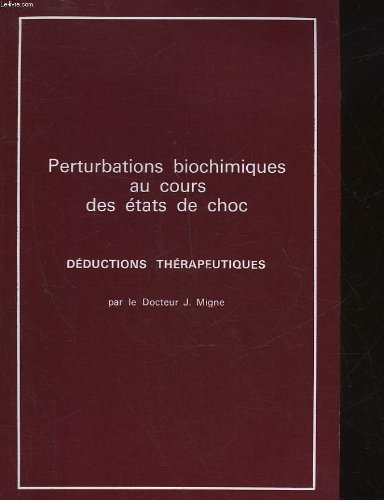 RO30078166. PERTURBATIONS BIOCHIMIQUES AU COURS DES ETATS DE CHOC - DEDUCTIONS THERAPEUTIQUES. 1972. In-4. Broché. Bon état, Couv. convenable, Dos satisfaisant, Intérieur frais. 63 pages. Nombreuses illustrations en noir et blanc hors texte.. . . . Classification Dewey : 610-Sciences médicales. Médecine