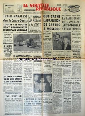 LES INTEMPERIES - LE CONFLIT DE PANAMA EST REGLE - QUE CACHE L'APPARITION DE CASTRO A MOSCOU - LE SOMMET ARABE - C'EST LE TRIOMPHE DE NASSER - LE PROCES EN APPEL DES VITICULTEURS A MONTPELLIER - L'ARMENIEN AKEPIAN AUTORISE A RESTER EN FRANCE - TRAITE DES BLANCHES ENTRE LA SEINE-ET-OISE ET LE SAHARA - LES SPORTS
