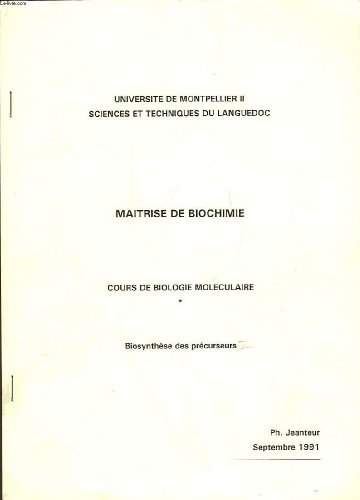 RO30033225. MAITRISE DE BIOCHIMIE - COURS DE BIOLOGIE MOLECULAIRE. 1991. In-4. Broché. Bon état, Couv. convenable, Dos satisfaisant, Intérieur frais. 22 pages reliées par des agraffes.. . . . Classification Dewey : 610-Sciences médicales. Médecine
