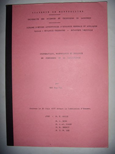 DEA d'Ecologie, Botanique tropicale-Ecologie terrestre: Systématique, morphologie et écologie du phénomène de la cauliflorie par Tay Eng Pin. Université de Montpellier, 1978. 49 pages. Format: 21x29,5cm. Poids: 384 grammes. Livre en bon état, dactylographié.