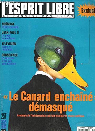 RO80141027. L'Esprit Libre. La passion des idées. N°1 : "Le Canard enchaînné démasqué" Anatomie de l'hebdomadaire qui fait trembler la classe politique - Jean-Paul II, le Pape se confesse - Le cerveau n'est pas une machine.. Nov. 1994. In-4. Broché. Bon état, Couv. convenable, Dos satisfaisant, Intérieur frais. Magazine de 82 pages. Nombreuses photos et illustrations en couleurs, dans le texte et hors-texte.. . . . Classification Dewey : 70.49-Presse illustrée, magazines, revues